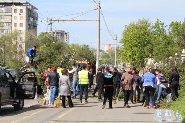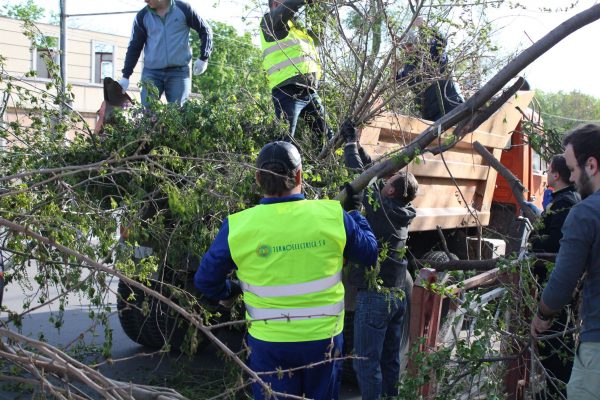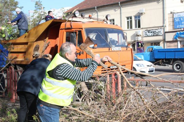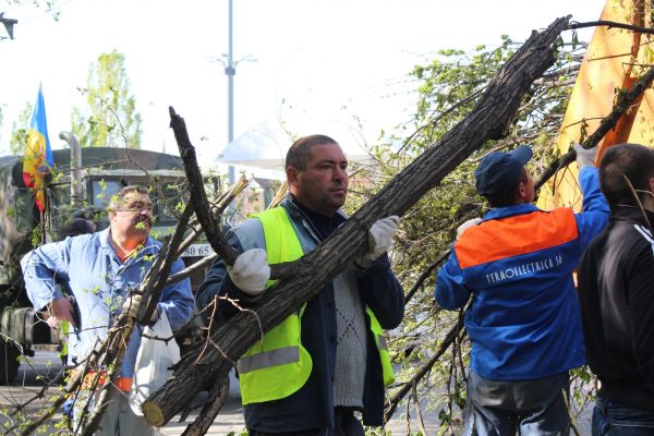 Peste 500 de angajați ai întreprinderii, începând de la director general, șefi de servicii, electricieni, lăcătuși, chimiști, economiști, dotați cu tot utilajul tehnic necesar pentru curățirea spațiilor verzi și transportarea crengilor și arborilor, sunt implicați activ, încă de la prima oră a dimineții. Mai multe echipe mobile au fost dislocate în diferite regiuni ale orașului, astfel încât să fie acoperită o zonă cât mai mare.